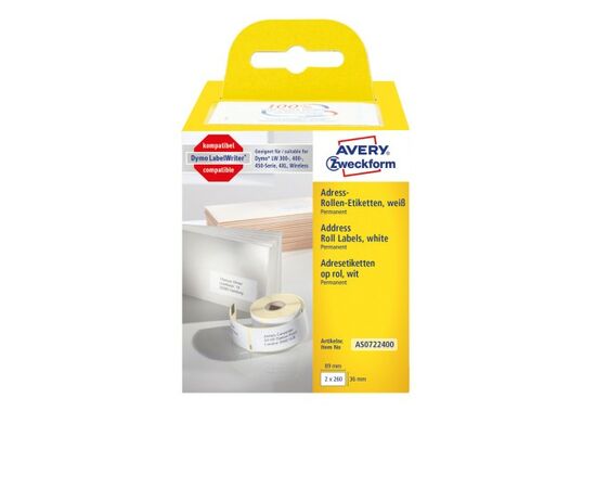 Адресные этикетки Avery Zweckform [AS0722400] для принтеров серии Label Writer (бумажные, 36х89 мм, 2х260 шт/рул)