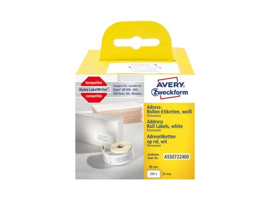 Адресные этикетки Avery Zweckform [ASS0722400] для принтеров серии Label Writer (бумажные, 36х89 мм, 260 шт/рул)
