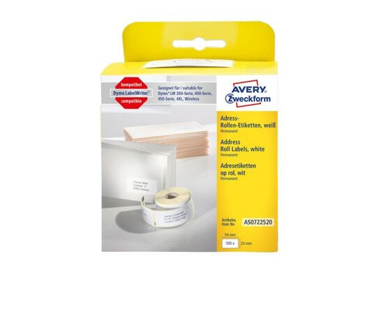 Этикетки Avery Zweckform [AS0722520] для принтеров серии Label Writer (черный на белом, 54х25 мм, 500 шт/рул)