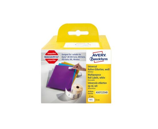 Этикетки Avery Zweckform [AS0722540] для принтеров серии Label Writer (черный на белом, 57х32 мм, 1000 шт/рул)